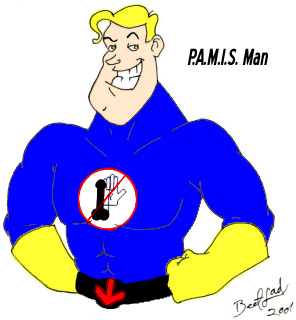 P.A.M.I.S is proud to present its new web cartoon/public service announcement, PAMIS Man! The cartoon is being done in Flash and is currently in developement. PAMIS Man is a superhero who, along with his bumbling sidekick, Captain BeefLad, fights to prevent public masturbation! As the project is in production, we will be putting up information and conceptual art. The pics will be found below, and more will be added as time goes by. Check in every now and then for more stuff! Production and Concept Art: |